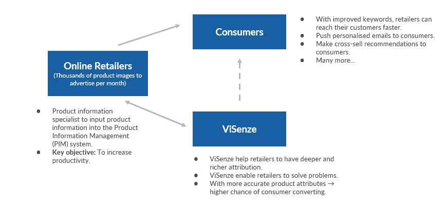 ViSenze helps its B2B clients to perform image tagging using the AI machine learning technology, so that the returned image search results are as accurate as possible.