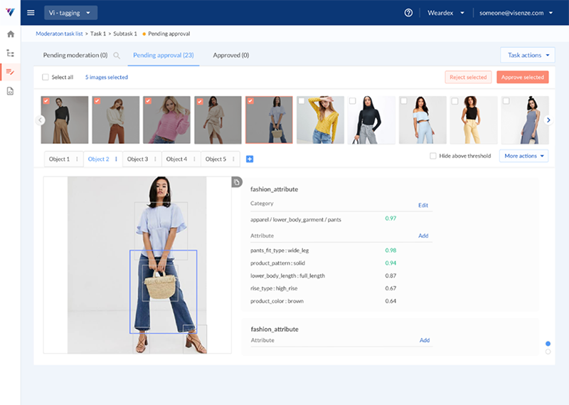 As we received feedback from client that their moderation routine is to review approximately 30% of the images per task, we decided to introduce thumbnails for quick inspection of tagged image results and multi-selection for approving of images.